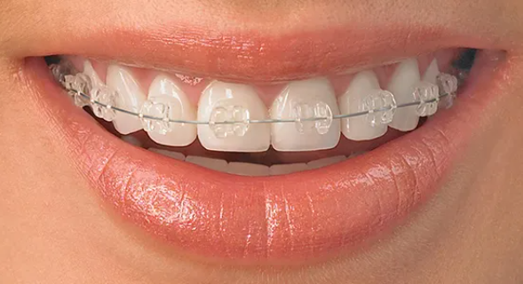 使用陶瓷材质的托槽,托槽的主体为白色,与牙齿的颜色接近,也是通过粘接剂固定粘结在牙齿表面,整个矫治过程患者都不能自行取下,能吃的食物与金属托槽一样受到限制,刷牙也同样有难度,但是美观性得到提升,价格比金属托槽稍高。