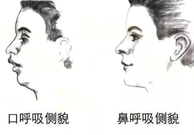 长期的张口呼吸会形成“腺样体面容”。患者由于长期张口呼吸使下颌骨后下旋及舌下降,导致唇肌松弛、开唇露齿、唇外翻、上前牙前突、上牙弓狭窄、腭盖高拱,久而久之发展为下颌后缩畸形。也就是说,长时间“口呼吸”会变丑。