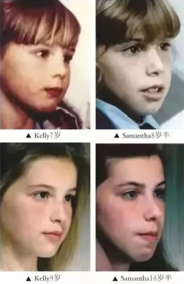 这里举一个著名的例子,英国一对姐妹,Kelly7岁,Samantha8岁半,都有口呼吸,Kelly听从了正畸医生的建议纠正了口呼吸,2年后颜面发育良好,但是Samantha仍用口呼吸,2年后上牙前突,脸型变长,下颌后缩,两姐妹容貌差异显著。