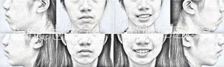 下面这位小姐姐,来诊时16岁,长期腺样体肥大导致习惯性“口呼吸”,自觉嘴突求治。笔者经过详细检查发现,她的主要问题是“口呼吸”导致的下颌后下旋让她看起来没有下巴。但她来时生长发育已基本停止,想让下巴再长出来,希望渺茫,但是想通过正畸掩饰性治疗,让她看起来有下巴,还是很有希望的。于是经过一番努力,牙齿矫正“送”了她一点下巴,让她正脸和侧脸看起来更柔和秀气了。