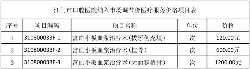 江门市口腔医院纳入市场调节价医疗服务价格项目表
