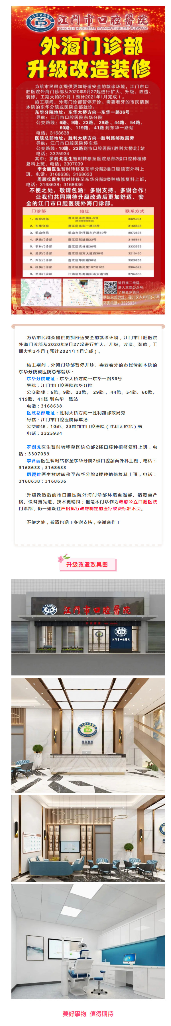 【官宣】外海门诊部升级改造 施工期间暂停开诊