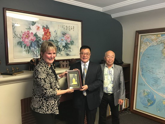 图1:宋华局长向罗马琳达大学医疗中心院方代表赠送纪念品