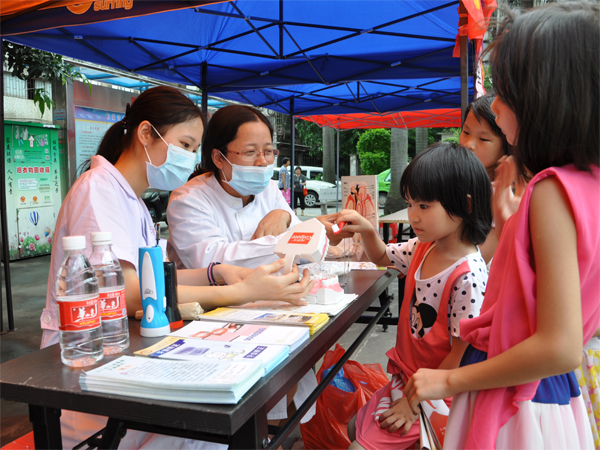 因此儿童防龋是非常重要的,给孩子一副健康完整的乳牙比买漂亮的衣服玩具、吃个大餐更值得!此次活动中张医生以生动活泼的语言配合图片介绍了儿童口腔疾病的流行状况、龋病的病因、蛀牙的危害并讲解龋病如何预防等。卢绮妮护士详细介绍口腔护理知识,让小朋友学会如何保护牙齿,并邀请小朋友演示如何刷牙。在轻松欢乐的氛围中,小朋友们掌握了口腔保健知识以及学会正确的刷牙方法,现场气氛十分活跃,深受小朋友的欢迎。