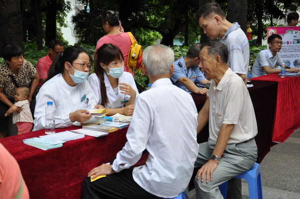 6月30日上午,我院张小红等3名青年党员义工参与了仓后街范罗岗社区举办的庆“七一”在职党员服务群众日义诊活动。在酷热的天气下,我院医生护士坚持为范罗岗社区居民进行免费的口腔检查及发放口腔知识、牙病防治的宣传资料,充分发挥我院技术特长,满足社区居民群众口腔保健的需求,热心解答社区居民尤其是中老年居民关于牙齿缺失、龋坏、口腔日常保健等问题。此次深入社区党员服务群众活动受到了当地居民的广泛关注,提高社区居民对口腔疾病的了解及自我保健的意识。