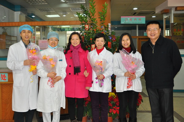 2013年2月10日大年初一,我院摆放着大吉大利的年桔及红红火火的年花,充满着浓浓的节日气氛。我院谢佐理院长、聂筱红副书记到我院总部建设门诊,慰问我院春节坚守岗位的职工。