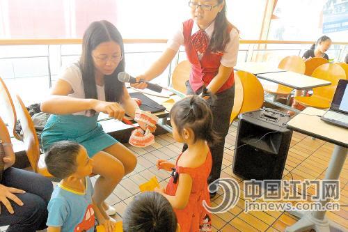 小朋友在张小红医生示范下学习如何科学刷牙。江门日报记者 郭永乐 摄