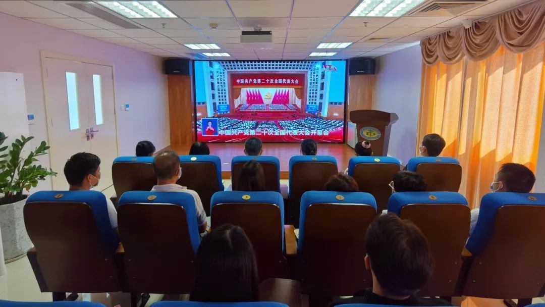 我院党总支书记谢佐理上午9:00参加完市卫生健康局的会议后就地收看二十大开幕式直播;党总支副书记曾红雨带领其他总支委员以及党员、医务人员代表等35人在我院学术报告厅集中收听收看习近平总书记所作的重要报告,一起喜迎盛会。其他党员群众通过手机、电视和网络等途径进行收看。