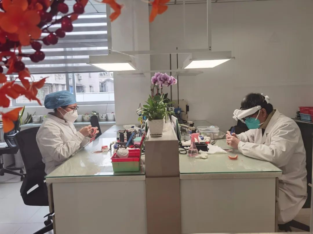 为了让患者尽早戴上义齿恢复正常的咀嚼功能和提升美观度,技师们正在认真地赶制出一批批精美的义齿。