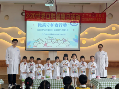 为迎接3·20世界口腔健康日,进一步普及儿童口腔健康知识,帮助幼儿养成科学护牙的好习惯,3月20日,江门市口腔医院牙防团队在江门市教育第一幼儿园(滨江园)精心开展了趣味满满的口腔健康教育活动。通过知识学习、互动游戏、实践操作、儿歌传唱四大环节,孩子们在轻松欢乐的氛围中,与牙齿做好朋友,收获满满护牙小知识!