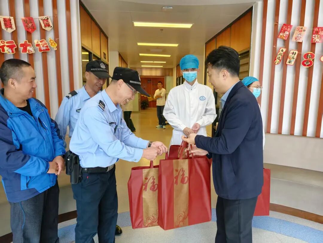 院领导与值班医务人员进行了亲切交谈,详细询问了各科室春节期间的工作安排与值班情况,感谢大家一年来为医院发展和口腔健康事业的辛勤付出,对他们坚守岗位、守护群众口腔健康的敬业精神给予充分肯定与赞扬。院领导亲手将满载心意的慰问品送到职工手中,并叮嘱大家在繁忙工作中注意劳逸结合,保障医疗安全与服务质量,确保节日期间各项工作平稳有序开展。